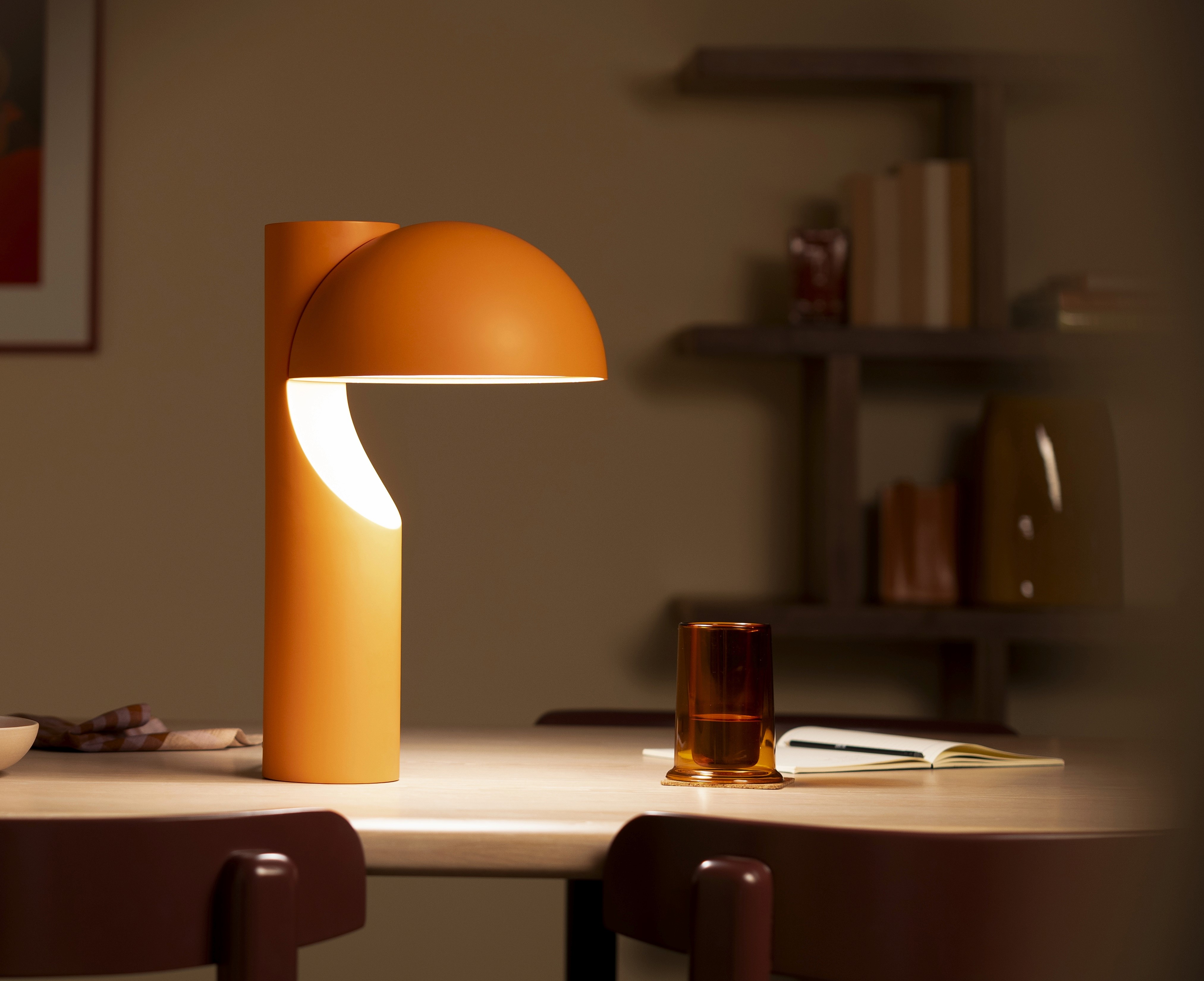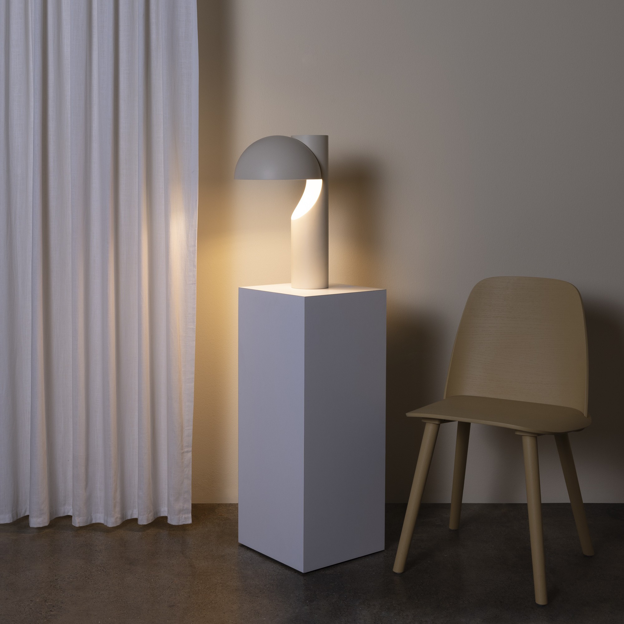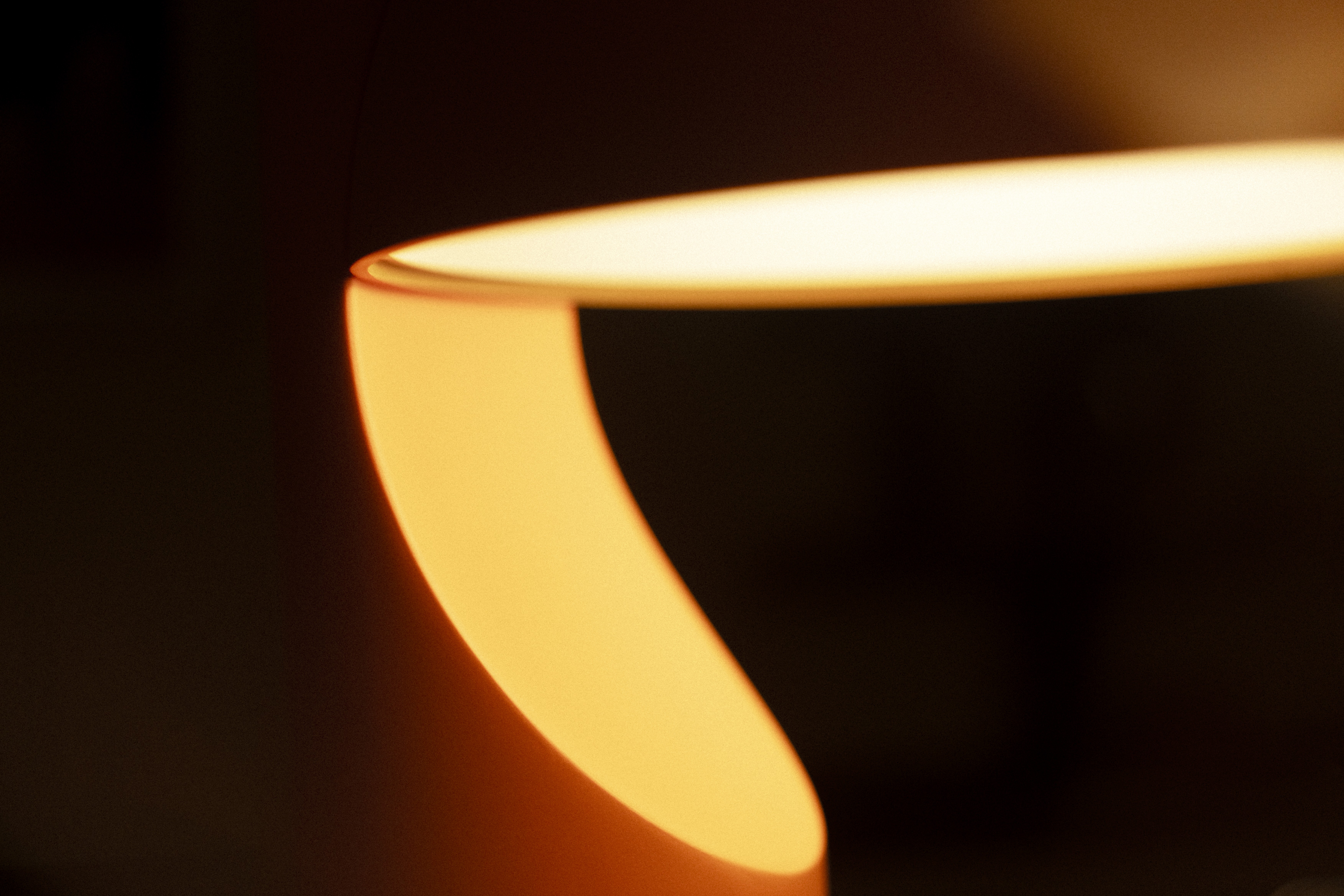 A scooped sphere rises over a crisp horizon, turning pure geometry into a floating, room-softening glow. The stance is elevated yet calm, ready for desks, side tables, and any spot that needs presence without clutter.