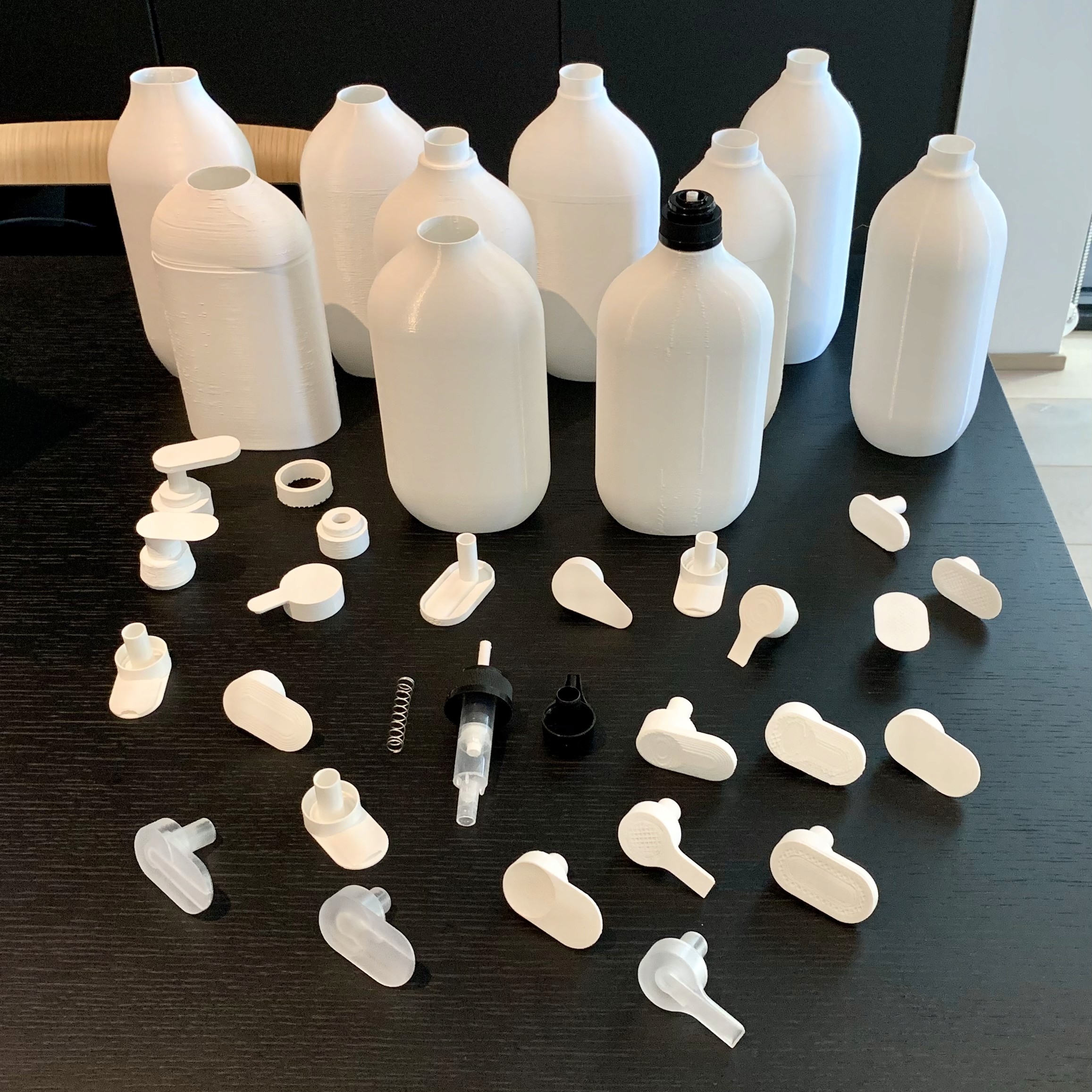 Flatten the body profile so it nests on the narrow ledges of hybrid tub showers, then tune the footprint for balance and easy reach. Pair the bottle with a custom, leak-proof pump sized for a mostly stationary product so dispensing feels controlled and repeatable. Build confidence through rounds of prototypes and pump trials to dial in the best experience before locking graphics and finishes.