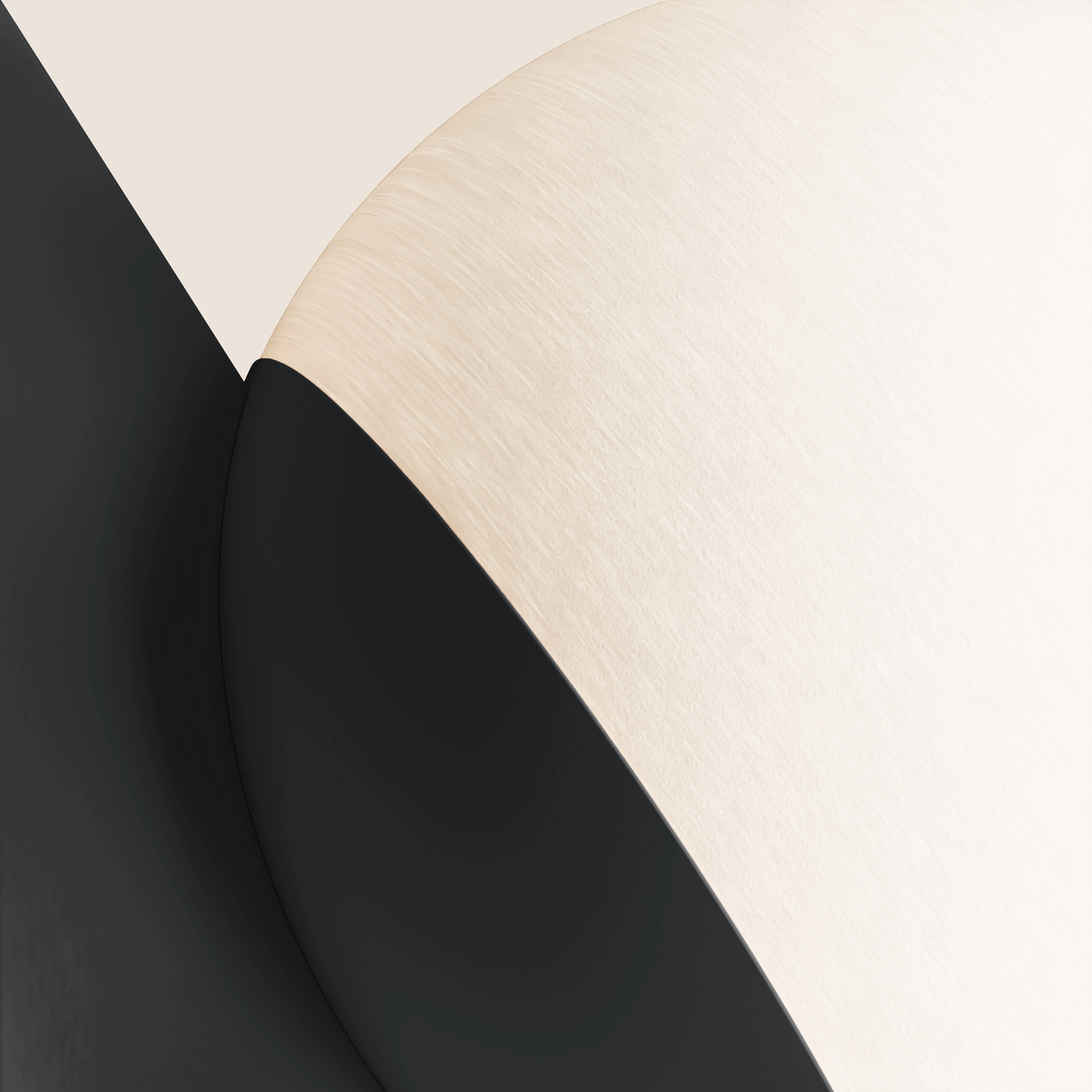 A soft sphere rests above a crisp pyramid, turning pure geometry into a poised little drama of light and shadow. The composition reads calm at first, then reveals a quiet tension that makes any surface feel considered.