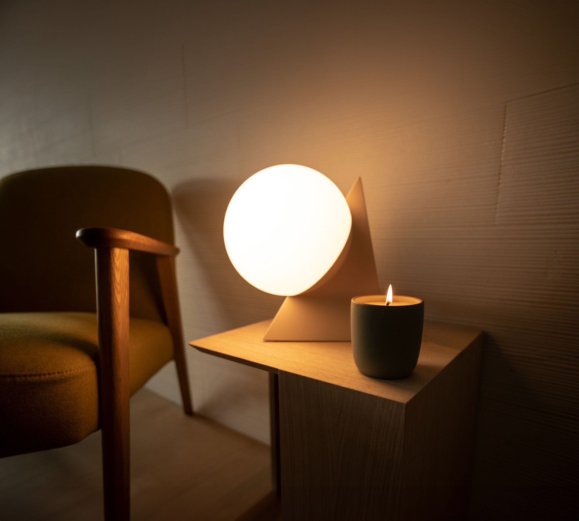 A conversation piece that lands easily anywhere and transforms the room with warm, even light. The geometry feels timeless, the stance feels assured, and the mood reads like a clear night sky captured on a shelf.