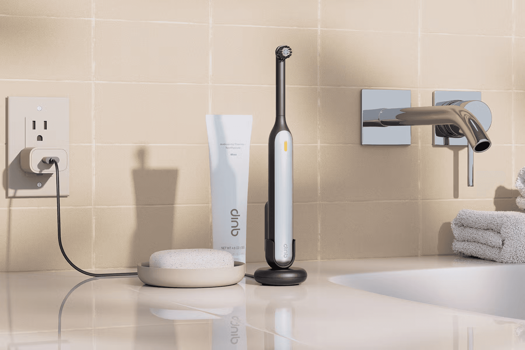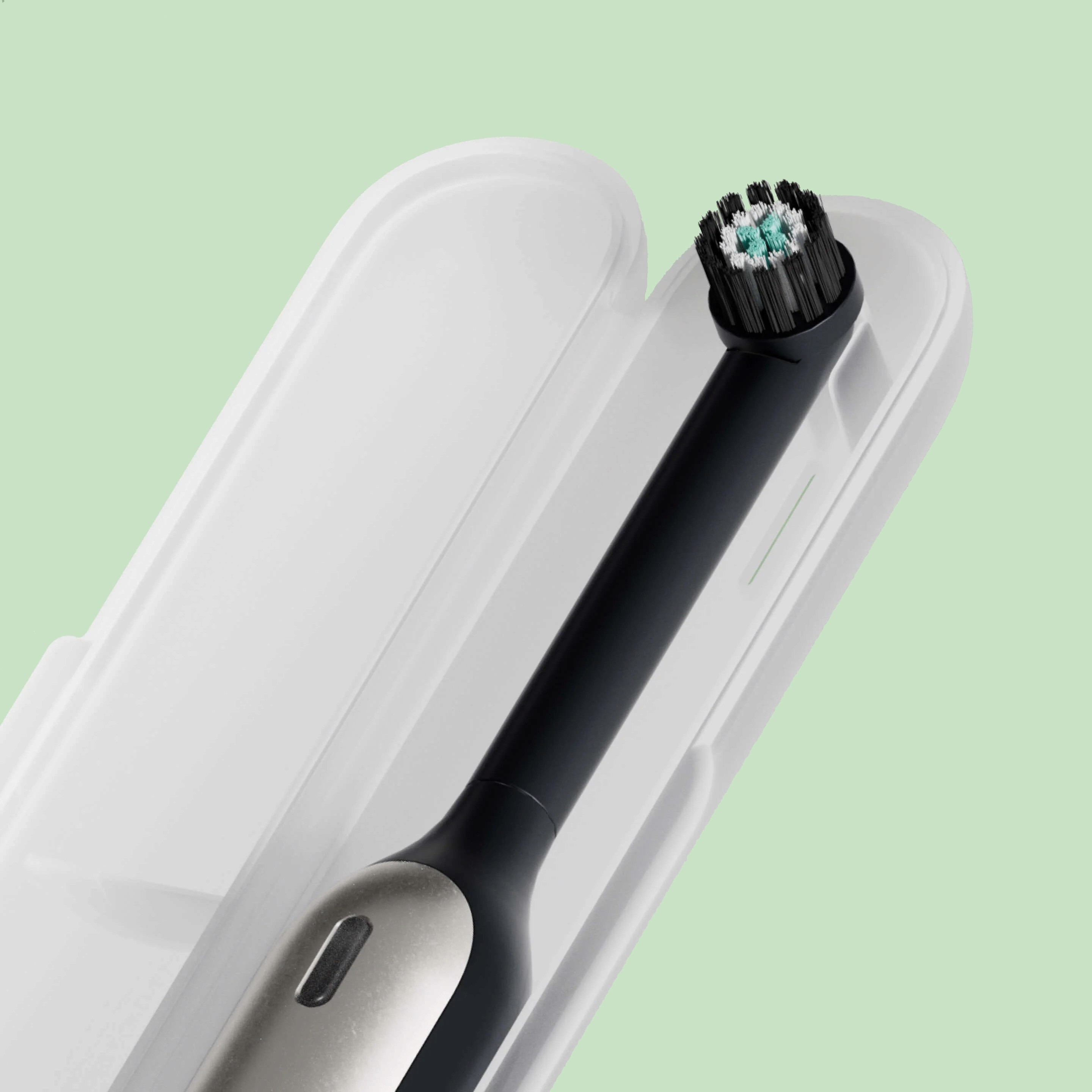 A calm, cylindrical silhouette and single metal faceplate carry quip’s visual language into the oscillating category without losing restraint. The round head and quiet interface turn a technical mechanism into a confident daily ritual.