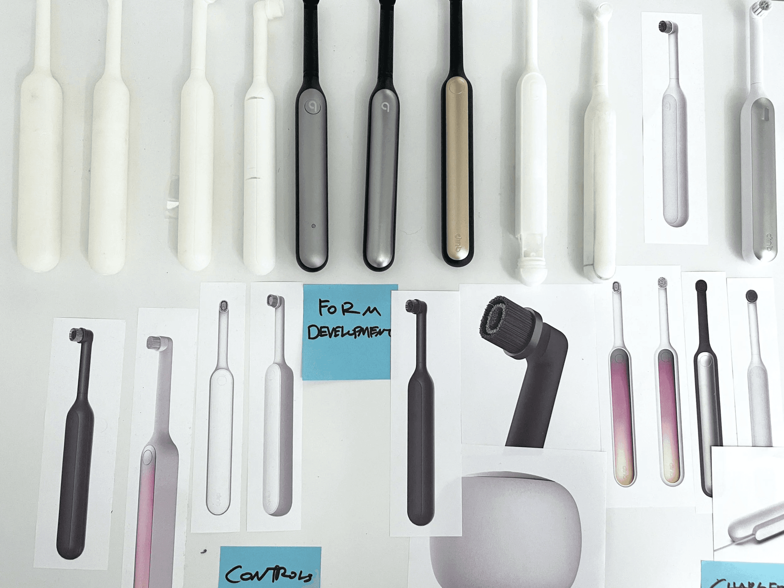 Qualitative interviews and quantitative surveys mapped the features people love, like guided timing, pressure feedback, and simple intensity choices, and helped deprioritize the rest. The handle preserves quip’s signature proportions and one button layout, translating brand geometry into a rotating architecture that feels intentional rather than busy. A custom tufting pattern on the bristles creates a uniquely quip clean, with zones arranged for thorough reach and a polished mouthfeel.