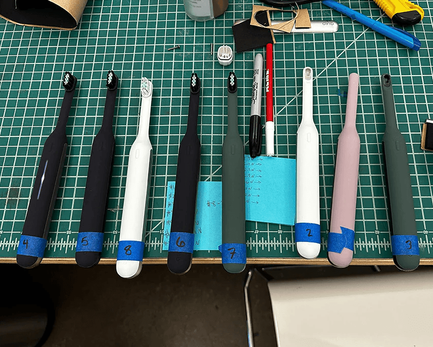 Introduce an LED touch bar that lets users slide to select from over ten intensities, with light-based guidance when brushing pressure runs high. Develop a first-of-its-kind EasyClick brush pod that twists and locks securely, swaps in seconds, and trims waste while preserving a crisp, minimal profile. Use a seamless silicone body and simplified joints so surfaces wipe clean and stay looking new.