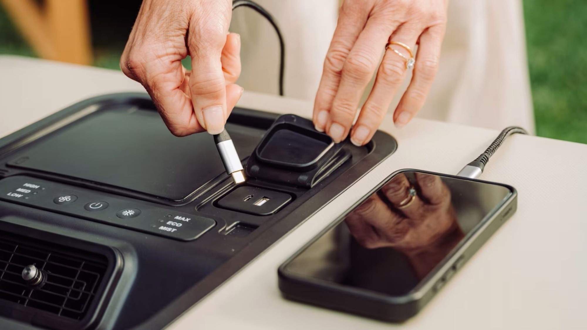 The brief was simple and ambitious at once: transform a dated personal-cooling cooler into a premium, brand-right object for Solo. The result is a clean, confident form that anchors gatherings, accepts modular accessories, and delivers a refined mist that actually cools people down.